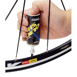 一番簡単なパンク修理方法がコレです。応急パンク修理剤。