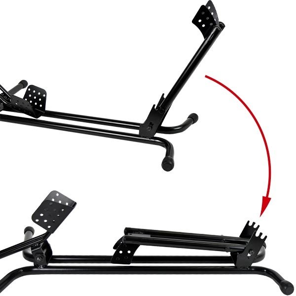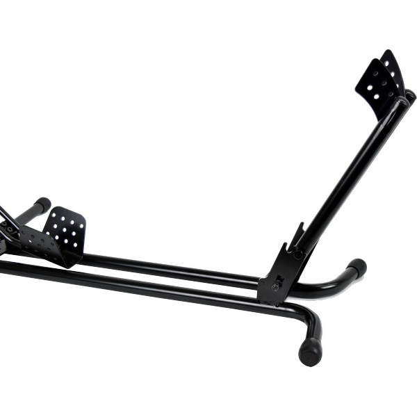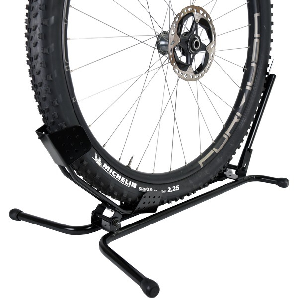 - 自転車をスタンドに置く動作も、タイヤ受け部がシーソー構造になっているため車輪を持ち上げる必要もなく簡単に安定することができます。