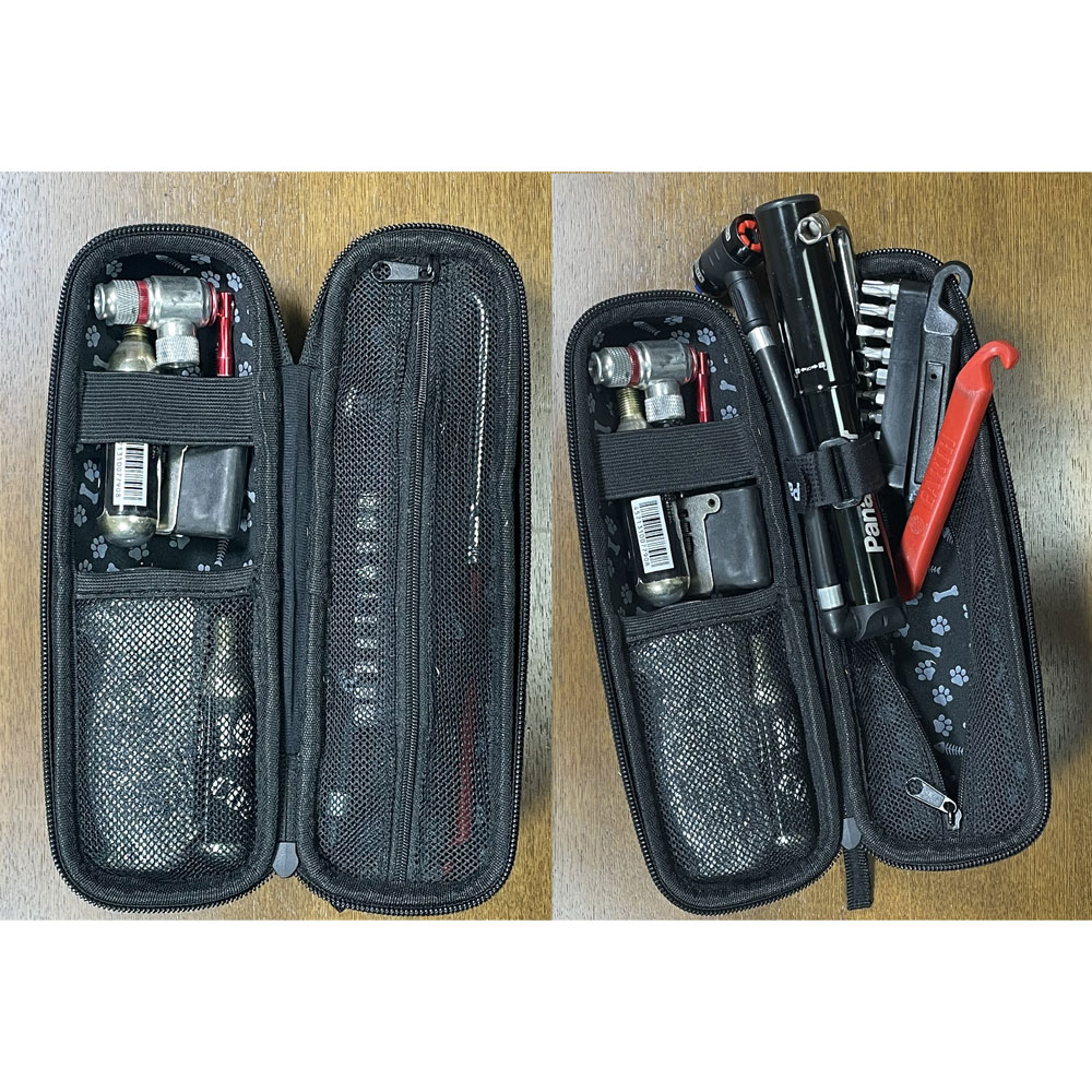 - 外寸225mmのロングサイズ。短いツールケースには入らない、長さ215mmまでの携帯ポンプが収納可能。