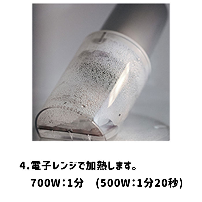 - 700Wの電子レンジで1分加熱するだけ。どなたでも簡単にお使いいただけます。(600Wで70秒くらい)