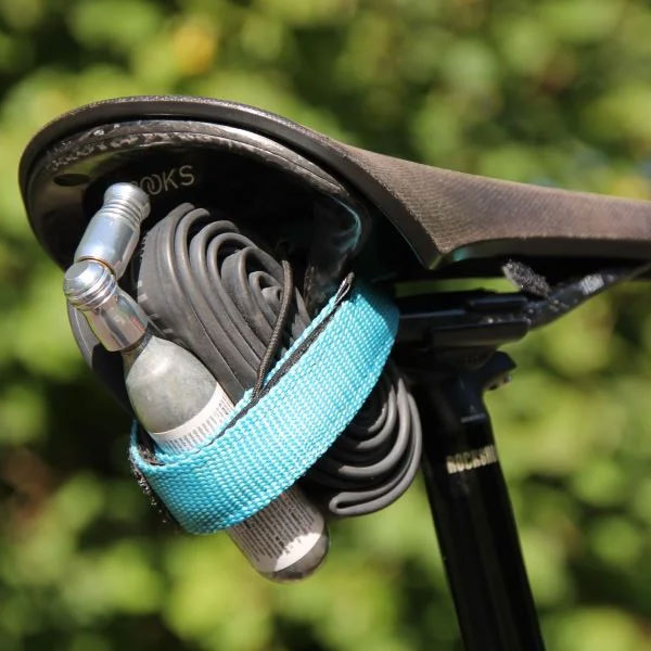 Made in Englandに拘った、シンプル且つ簡単に荷物を固定サドルの下に固定できるストラップ