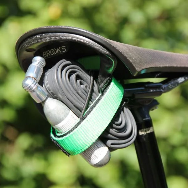 Made in Englandに拘った、シンプル且つ簡単に荷物を固定サドルの下に固定できるストラップ