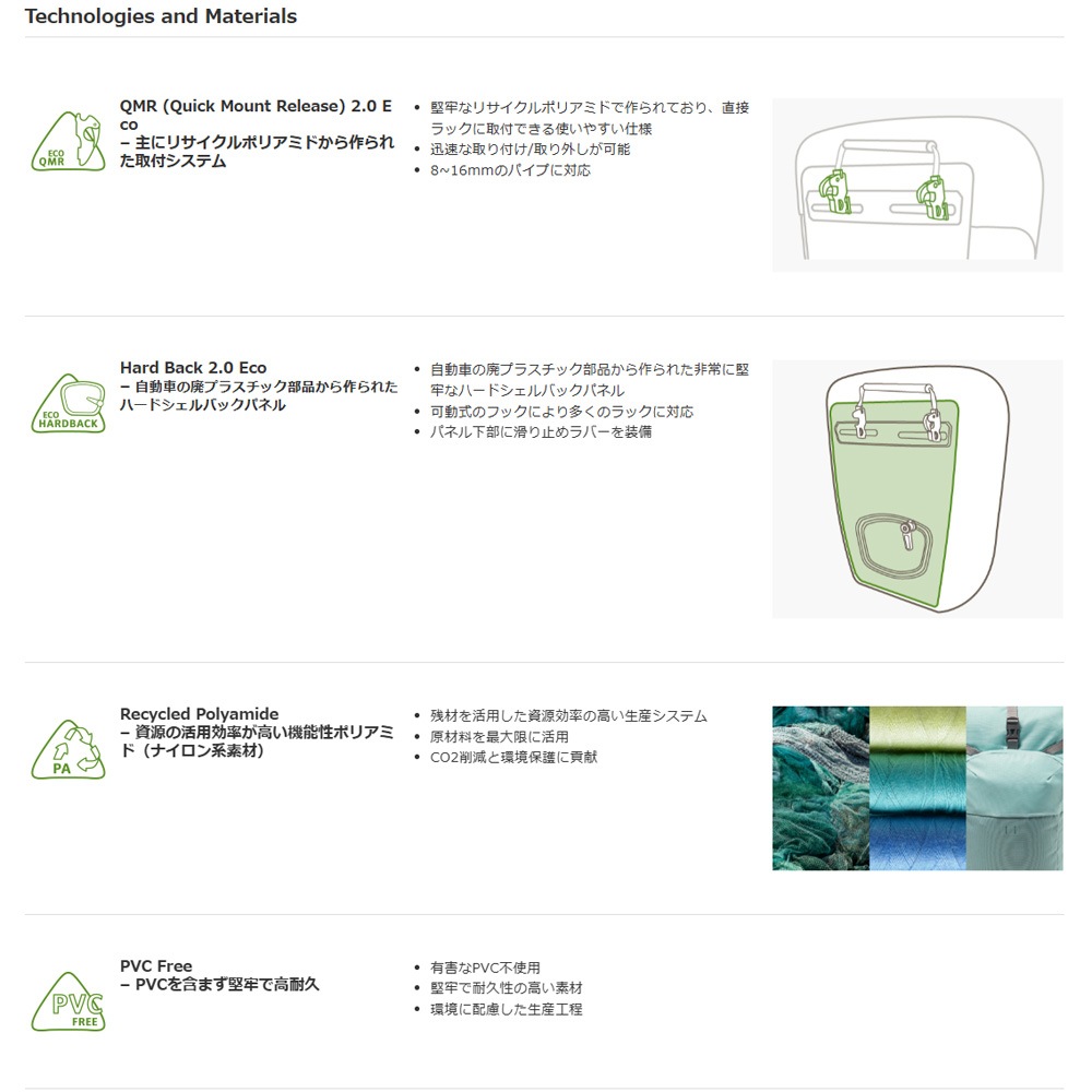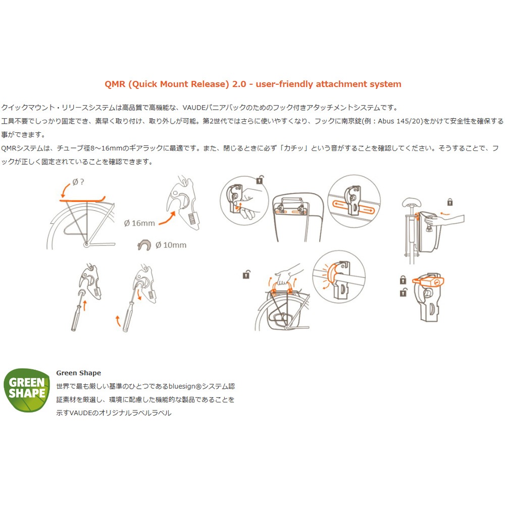 - 信頼性の高いQMR 2.0アタッチメントシステムは片手で簡単に装着でき、調整も容易です。直径16mmまでのラックチューブに対応し、下部のレールフックにより悪路でもバッグの安定性を確保します。