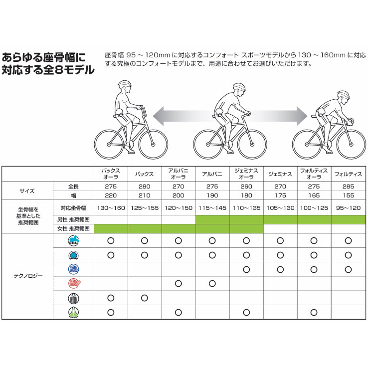 座骨幅130mmまでに対応する、極厚シリコンゲル パッドのコンフォート サドル