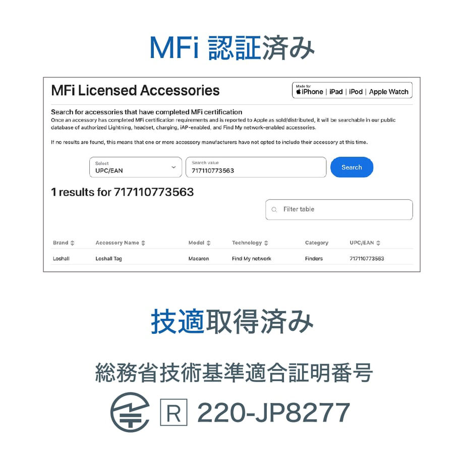ローシャルタグ Macaron LTG-BK Loshall Tag for Apple ブラック
