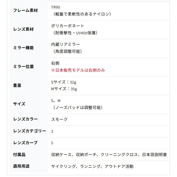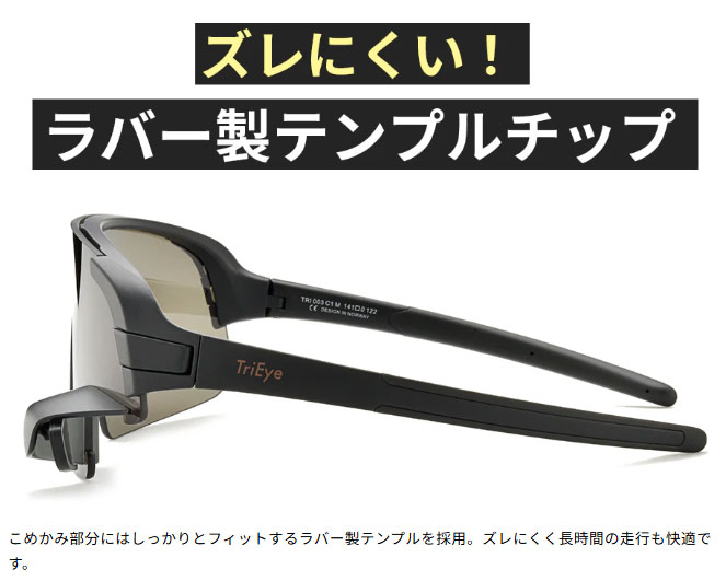 - 一般的なスポーツサングラスと変わらない重量で、長時間のサイクリングでも快適に着用できます。