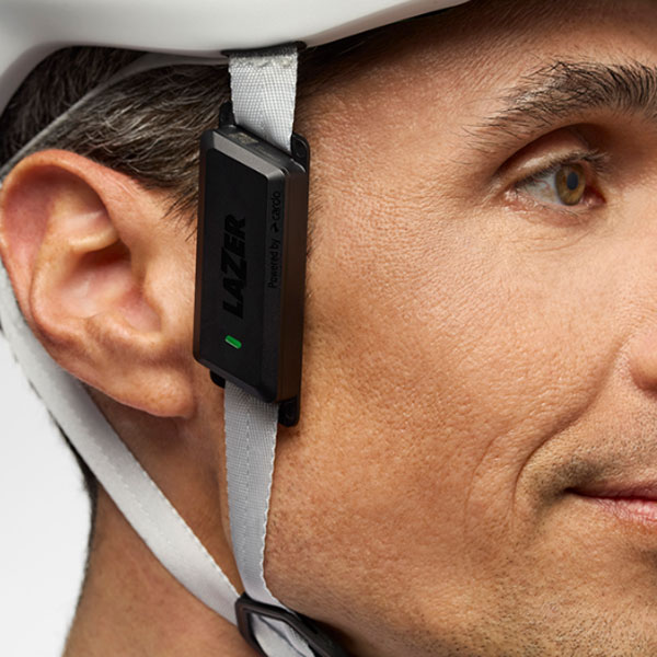 - 重量はわずか19gと軽量で、ほとんどのヘルメットに装着可能なストラップ固定方式を採用しています。