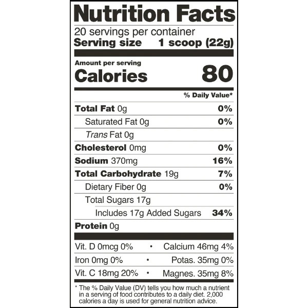 汗をかいている場合は使用し、喉が渇いた場合は飲んでください。喉が渇いていない時は飲まないでください。 - 原材料:サトウキビ糖、クエン酸ナトリウム、ブドウ糖、クエン酸、クエン酸カルシウム、炭酸マグネシウム、オレンジ果汁、アプリコット果汁、パイナップル果汁、パッションフルーツ果汁、ラズベリー果汁、アスコルビン酸(ビタミンC)、リンゴ酸、オレンジオイル。