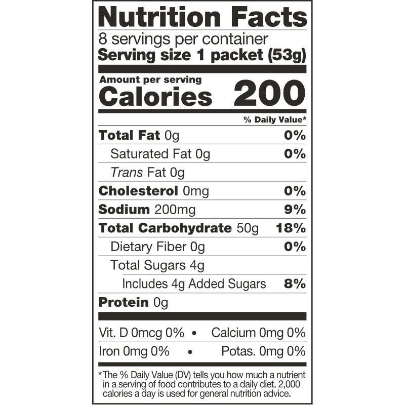 非遺伝子組み換え、グルテンフリー、乳製品フリー、コーシャ、ヴィーガン - 炭水化物:50g