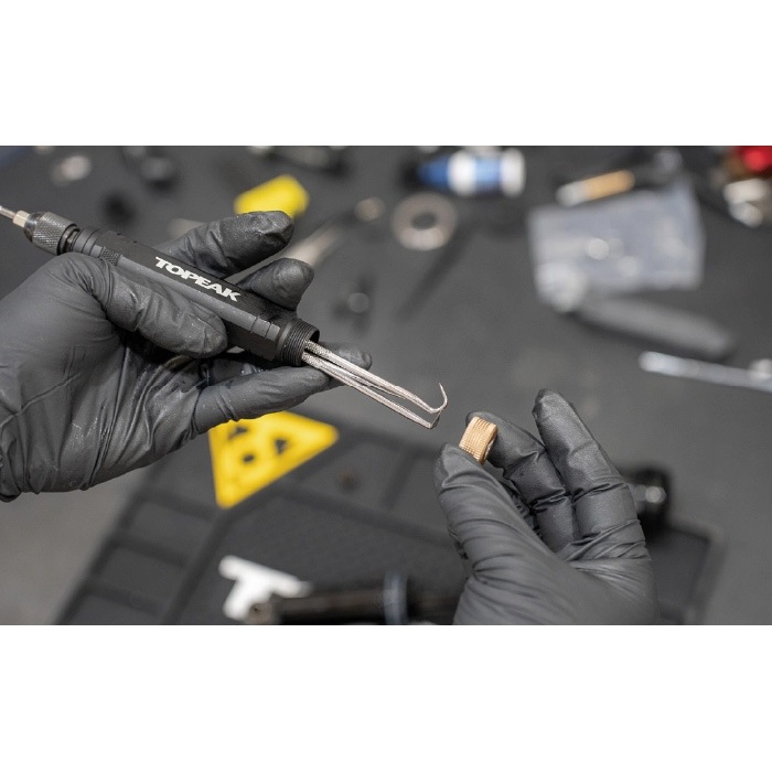 ハブやサスペンションのオーバーホールに欠かせない、差し替え式の精密シールピックです。