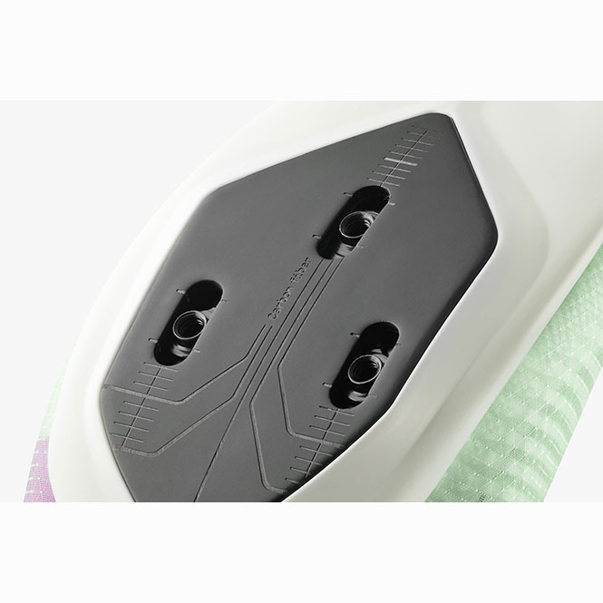 - 「VEGA」は一体型フルカーボンアウトソールを採用し、低いスタックハイトと高い剛性を同時に実現します。革新的な設計により踵とクリートエリアのドロップを削減し、エルゴノミックな足裏サポートを提供。足の安定性を高め、より効率的なパワー伝達を可能にします。